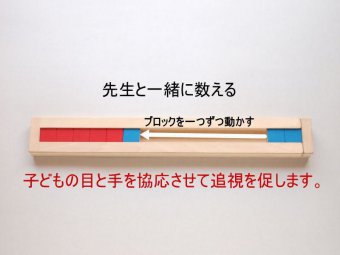 仕切りのあるところにブロックを一つずつ入れることにより、数えやすくなります。