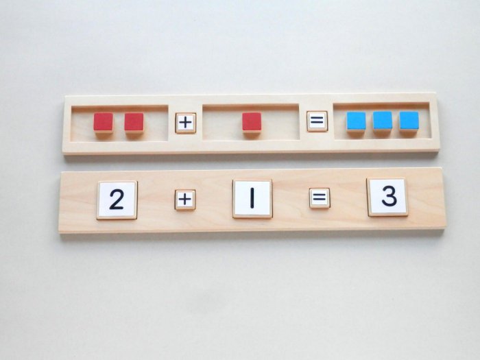 量の概念、数える学習、同じの学習ができたうえで、最終的に繰り上がり、繰り下がりの計算式の学習へ導きます。